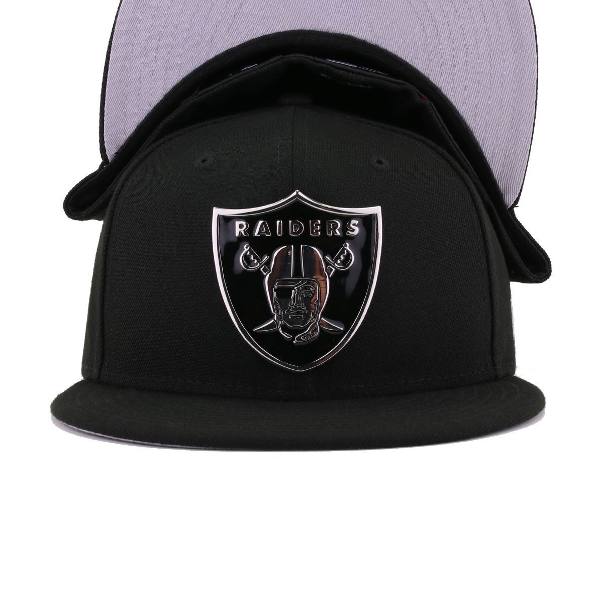 From New Era’s “Golden Front” Metal Badge collection. Now we see what’s obvious here: there’s no gold anywhere. While the other team’s entries into this collection feature Black/Metallic Gold Metal Badges, the Raiders have an agreement with New Era that no hats will ever feature Metallic Gold color. Ever. Black and Silver forever. The painted appearance of this limited edition metal badge is really one of the coolest Raiders hats we’ve ever had. A must-have for any fan, whether casual or die-hard.