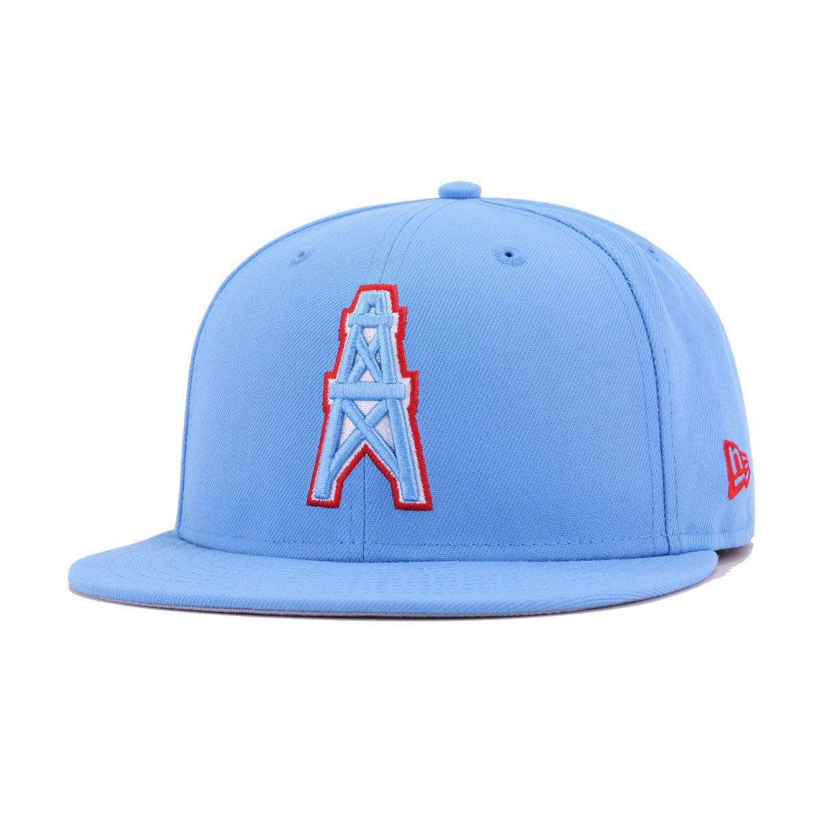 One of the most beautifully colored throwbacks in the NFL, this Houston Oilers fitted sports one of the most iconic logos of the league. Dressed in Radiant Blue, this custom makes it pop with Front Door Red outlines on its front logo. Rear NFL shield gives it a premium and authentic feel. A colorway like no other in NFL history, this is one of the most unique fitteds out there. Represent Texas football with this classic hat.